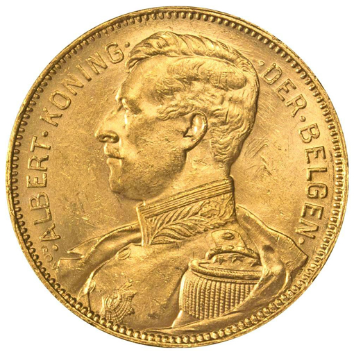 Fu coniata nel 1914, l’anno in cui il Belgio fu invaso dalle forze tedesche, segnando l’inizio della Prima Guerra Mondiale, un periodo cruciale per il regno di Alberto I.